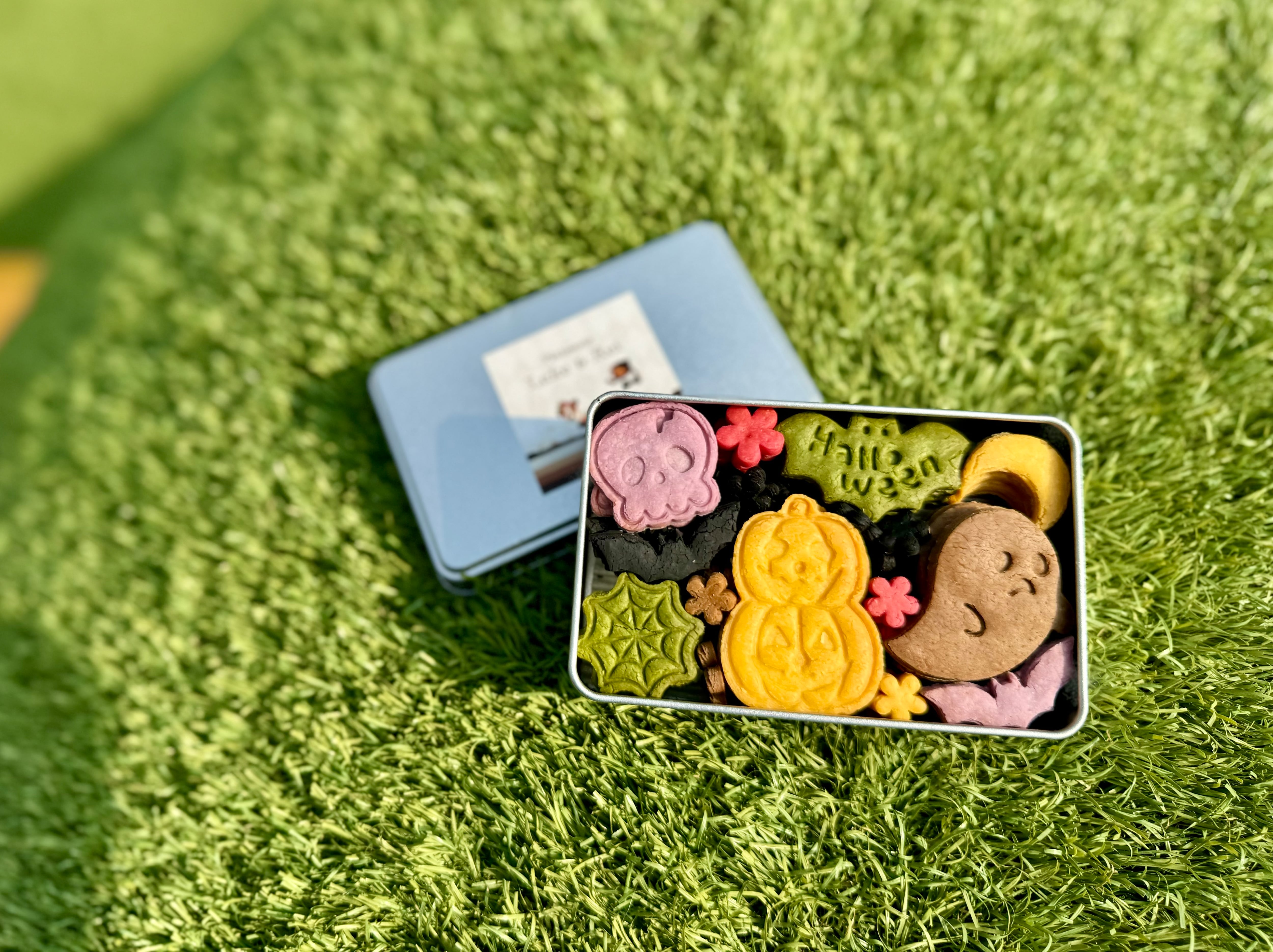 【原材料】 米粉、豆乳、太白ごま油、コーンスターチ、てんさい糖、ほうれん草パウダー、にんじんパウダー、かぼちゃパウダー、竹炭パウダー、キャロブパウダー、ビーツパウダー、ベーキングパウダー